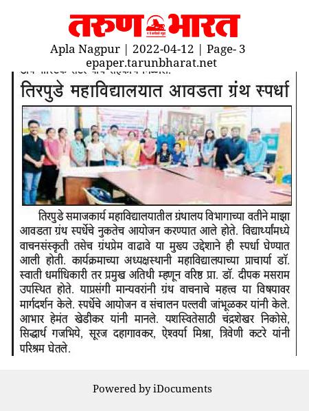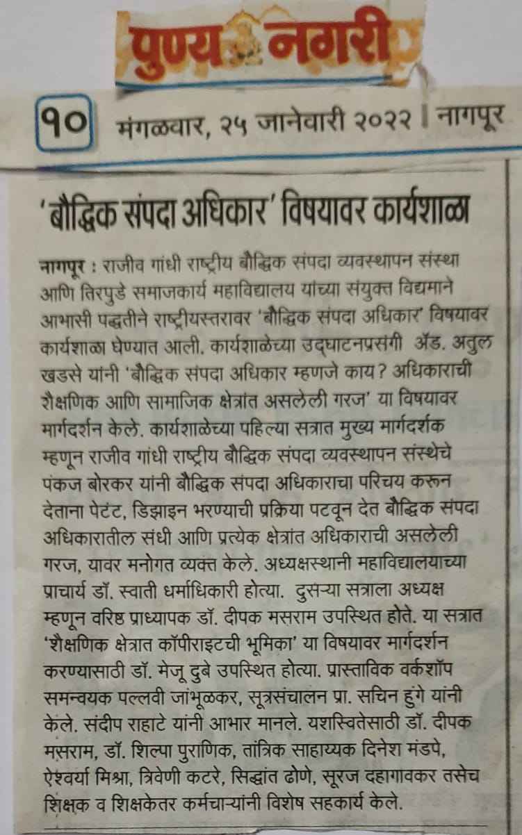 Copyrights © 2022 TIRPUDE COLLEGE OF SOCIAL WORK All rights reserved. Designed by Probuz Technologies