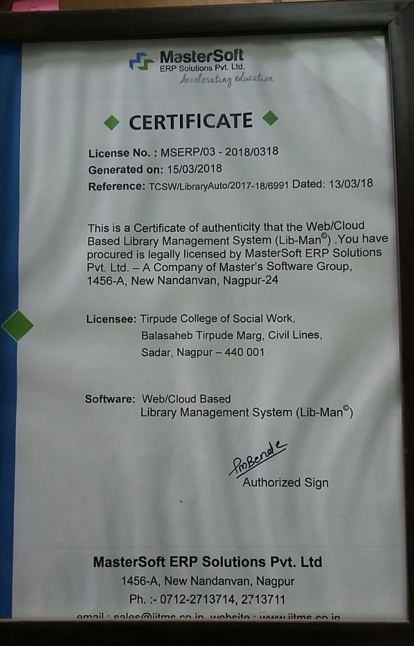 Welcome to Tirpude College of Social Work , Nagpur -- -- An Autonomous Institution , Certified with ISO 21001 : 2018 Affiliated To R.T.M Nagpur University, Nagpur . Recognised by UGC ,New Delhi and Govt of Maharashtra , Accredited with A+ grade with 3.51 CGPA by NAAC, Bangalore in 3rd cycle , College with Potential for Excellence by the UGC , New Delhi (2017-2021). Admission open for session 2023-2024 For B.S.W.-I, M.S.W.-I (As per R.T.M.N.U. Schedule)