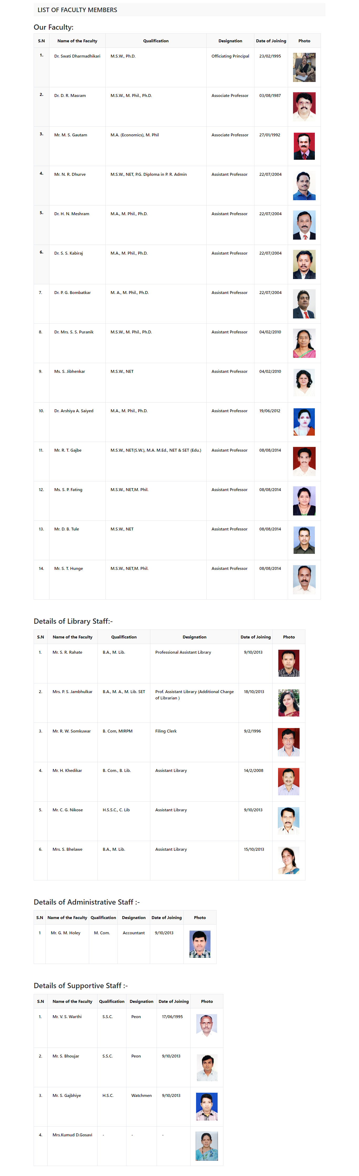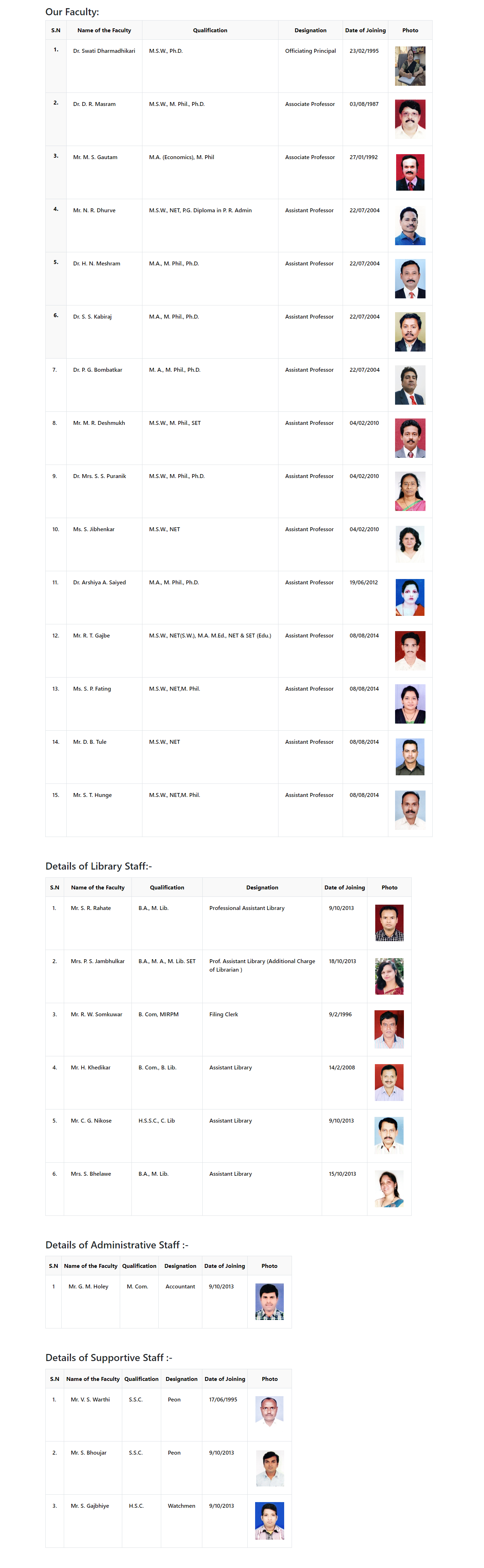 3. Dr. N. R. Dhurve M.S.W., NET, P.G. Diploma in P. R. Admin , Ph.D. Assistant Professor 22/07/2004