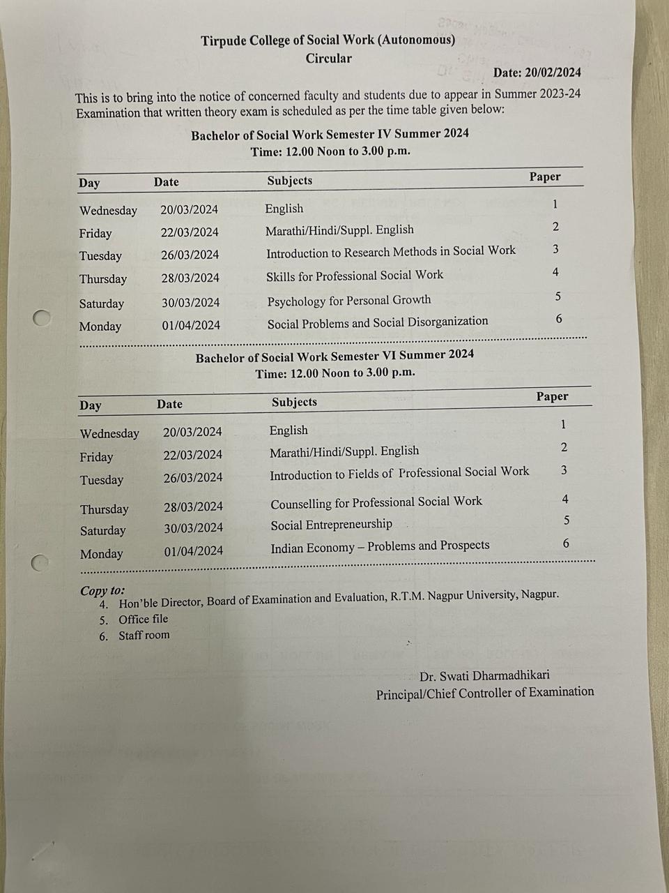 Bachelor Of Social Work Semester IV / VI Winter 2024