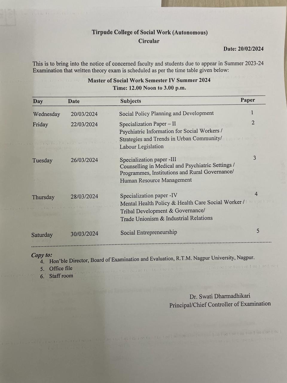 Welcome to Tirpude College of Social Work , Nagpur -- -- An Autonomous Institution , Certified with ISO 21001 : 2018 Affiliated To R.T.M Nagpur University, Nagpur . Recognised by UGC ,New Delhi and Govt of Maharashtra , Accredited with A+ grade with 3.51 CGPA by NAAC, Bangalore in 3rd cycle , College with Potential for Excellence by the UGC , New Delhi (2017-2021). Admission open for session 2023-2024 For B.S.W.-I, M.S.W.-I (As per R.T.M.N.U. Schedule)